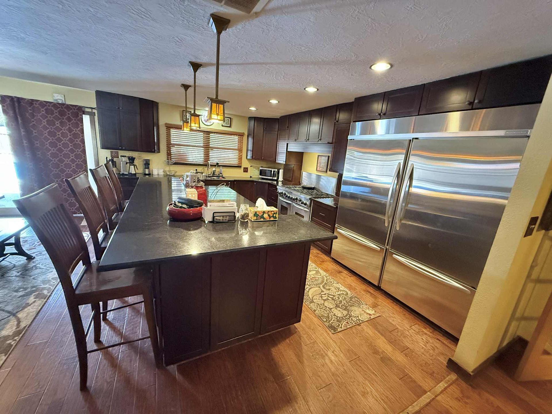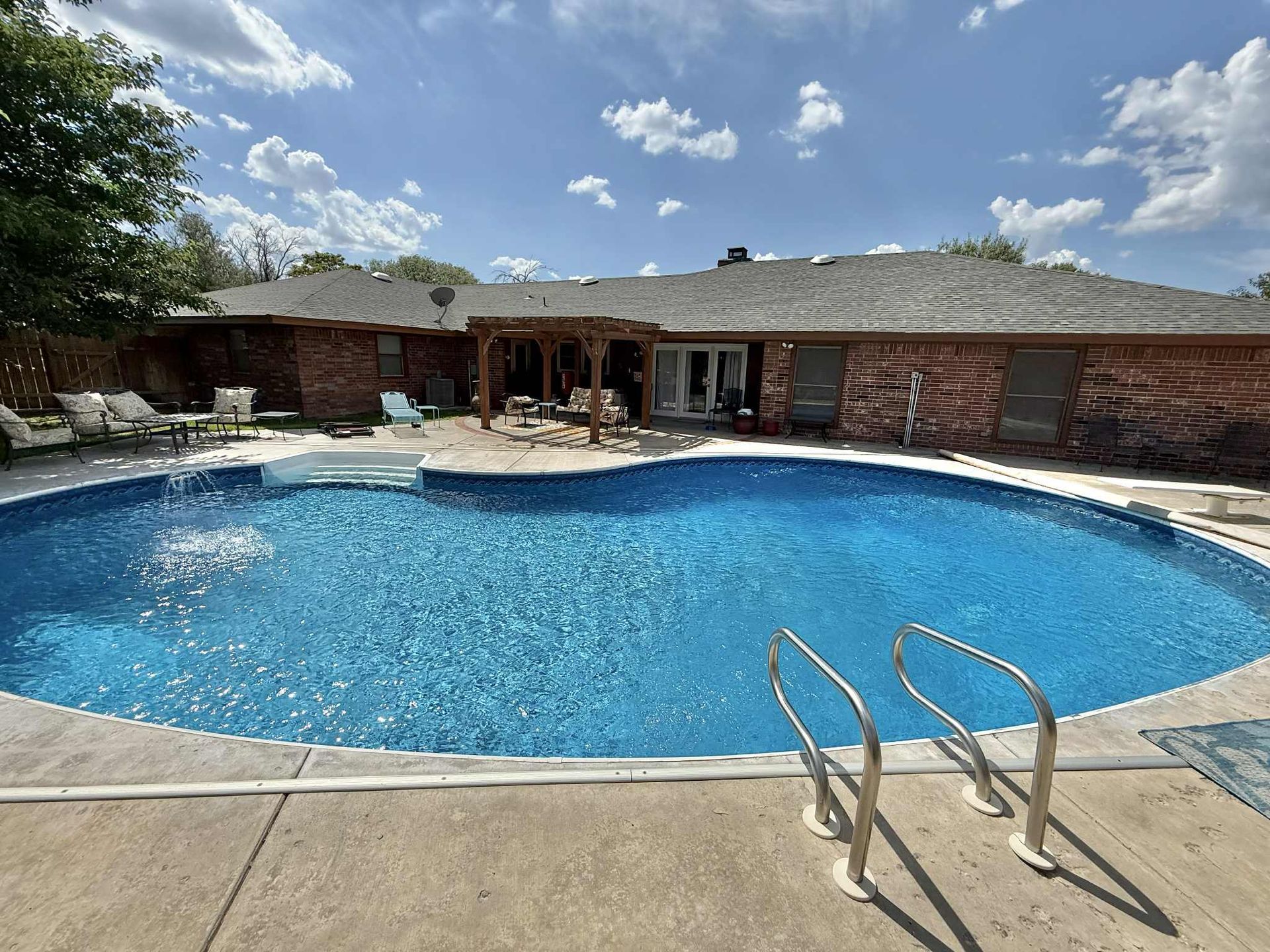 Don't miss this rare opportunity in Guymon! This 5 bedroom, 3.5 bathroom home sits on a corner double lot and is packed with features you won't find anywhere else. From the moment you step inside, you'll notice the space and versatility this property offers. With two living areas and two fireplaces, there's plenty of room for relaxing, entertaining, or hosting gatherings. The kitchen is a standout!! Designed with a half-commercial layout, oversized appliances, and incredible workspace that makes cooking for a crowd a breeze. A large utility room provides storage and convenience for busy households. Step outside to your own backyard retreat: an inground pool with a new liner and electric cover installed in 2024, perfect for summers with family and friends. The oversized lot provides endless possibilities for outdoor activities, gardening, or simply enjoying the extra space. Additional highlights include a two-car garage, corner lot location, and updates that make this property move-in ready. Sellers are very motivated and open to offering closing cost assistance or other concessions-making this one of the best values on the market today.